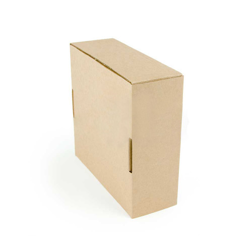 Самозбірна коробка зі складною кришкою зручно, легко і швидко складається та надійно захищає товари від зовнішнього впливу. Вона має міцну форму, яка дозволяє складати велику кількість коробок одна на одну. Коробка відкривається демонстраційним шляхом, тому вміст можна розглянути на етапі покупки. Засувки на кришці не дозволять коробці спонтанно відкритись, але дадуть можливість відкривати та закривати її неодноразово, не пошкоджуючи цілісність структури. Гофрований картон, як правило, відомий своїми властивостями амортизації, він захистить навіть делікатні товари від можливих механічних пошкоджень. Дизайн самостійного складання передбачає збірку без використання клейових засобів, це не тільки зменшить витрати клієнта на виробництво упаковки, але й зробить таку гофровану коробку безпечною для зберігання та транспортування їжі. Також ця коробка може бути використана для упаковки годинників, косметики, наборів страв, електроніки та інших продуктів, що відповідають зазначеним внутрішнім розмірам.