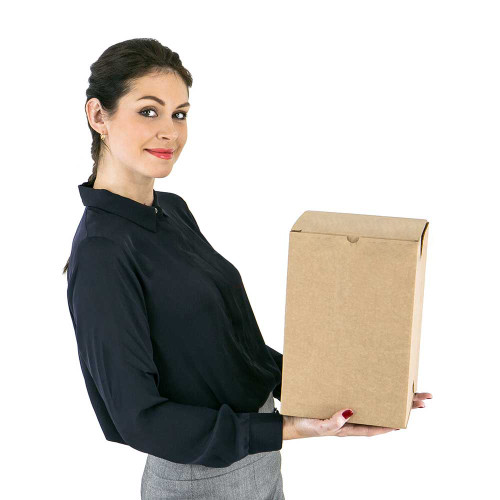 Для упаковки широкого спектру середніх та малих товарів використовується картонна коробка 200 (d) x 200 (sh) x 300 (c) з тришарового коричневого гофрованого кардону. Цей зібраний з одного цілого аркуша гофрованого картону без використання додаткових інструментів фіксації. Однією з переваг є коробка - це наявність складної кришки, яка надає презентабельний вигляд пакету і дозволяє використовувати цю скриньку як подарунок.