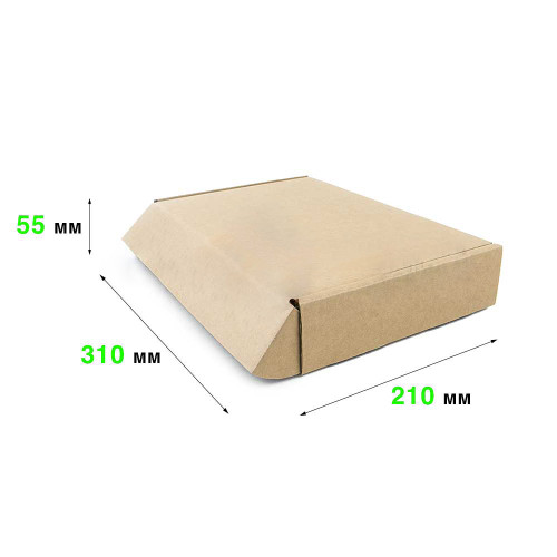 Картонна коробка 310 (E) X 210 (SH) X 55 спеціально розроблена для формату паперу A4 і ідеально підходить для надсилання книг чи інших об'єктів такого розміру. Ця коробка може бути використана для інтернет -магазинів, оскільки вона має простий і надійний дизайн із потрійними стінами, що надає додаткову жорсткість і міцність. Таким чином, у цій коробці є зручна складна кришка, яка щільно закрита і не дозволяє вмісту випадати під час транспортування.