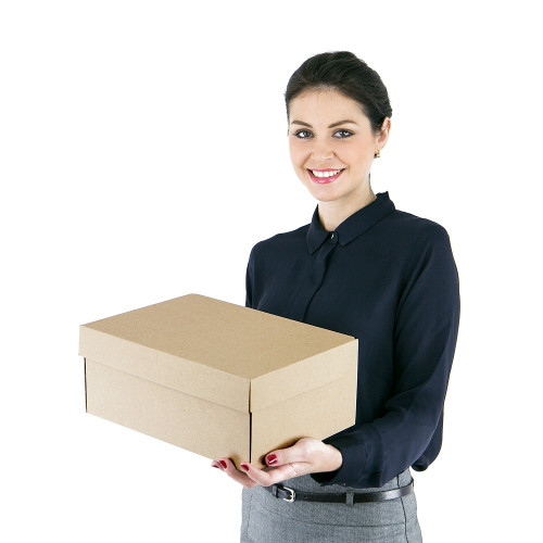 Взуттєва коробка 320 (d) x 220 (w) x130 (c) Brown. Самостійна коробка, з трьох шарів мікрогофрокартону коричневого кольору, товщина 1,5 мм (профіль E), виготовлений з суцільного аркуша картону, що не потребує додаткового склеювання.